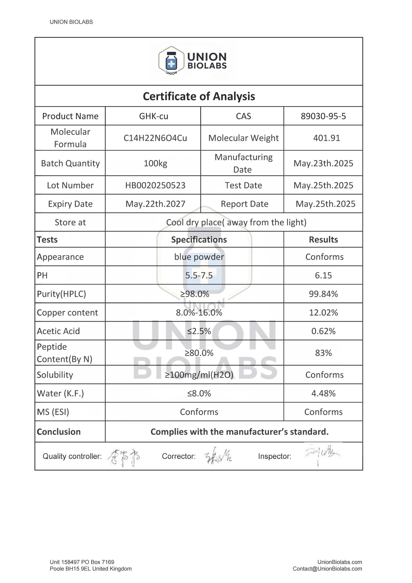 Content: GHK-Cu (lyophilised)