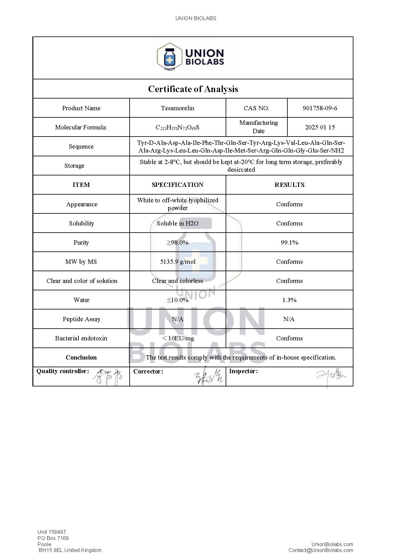 COA included for batch verification